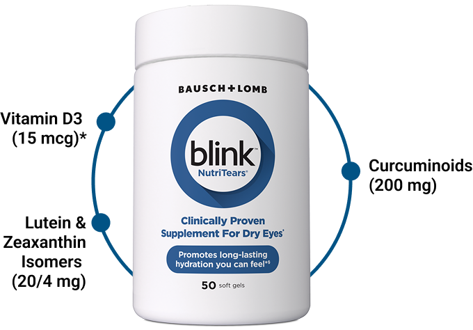 Lutein, zeaxanthin, curcumin, and vitamin D3 have demonstrated protective and anti-inflammatory properties in ocular models. Clinical studies showed that BlinkTM NutriTears® improves symptoms of dry eye disease, reduces inflammatory markers and improves corneal and conjunctival staining.
